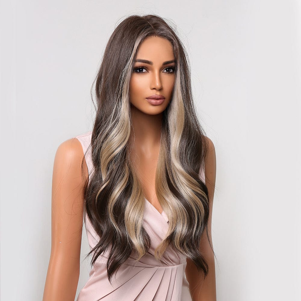 The 25 Inches Wavy Money Pieces Synthetic Wig - Maia is a wig made from...