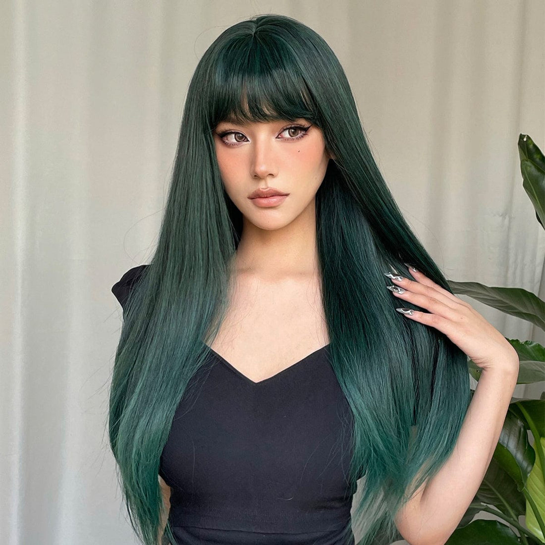 27″ 3-Shade Straight Cut Bangs Synthetic Wig