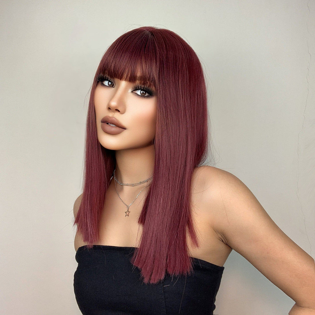 Get ready to make a bold statement with the 16 Inches Straight Red Bob with...