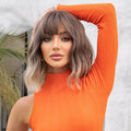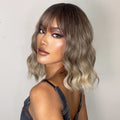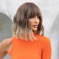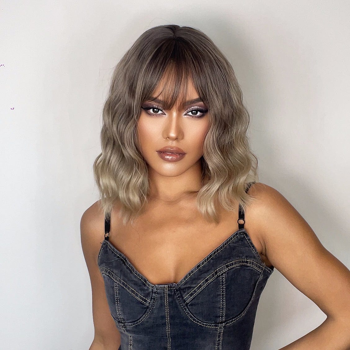 The wig features a set of bangs that add a touch of sophistication to the overall style, while the wavy texture provides a playful and feminine vibe. The high-quality synthetic fibers used in this wig make it soft and comfortable to wear, while also providing a natural-looking appearance.