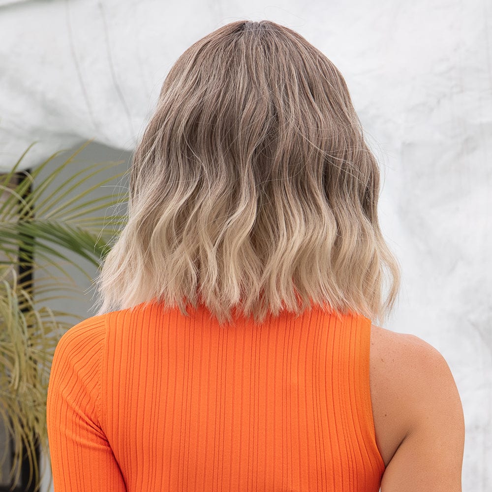 Get ready to turn heads with this stunning Cali Waves synthetic wig! With a length of 13 inches and a wavy bob style, this wig is perfect for anyone looking for a fun and flirty new look. The Ashy Beige base color mixed with Vanilla Blonde at the ends creates a unique and eye-catching ombre effect that is sure to make a statement.